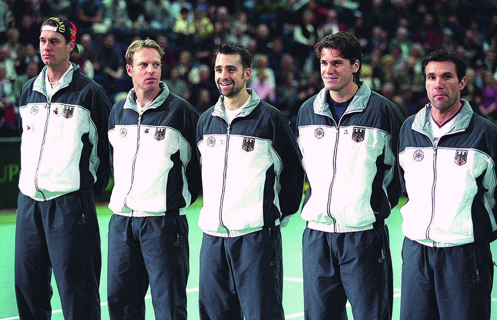 - 2001: Zum letzten Mal im Davis Cup-Team. Mit Prinosil, Kiefer, Haas und Kapitän Steeb (v.l.).